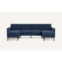 Nomad King Sectional Navy Blue - Performance Basketweave / Walnut - Wood / Block