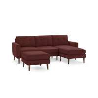 Nomad Sofa Sectional with Ottoman Brick Red - Performance Basketweave / Walnut - Wood / Block