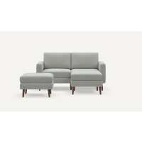 Nomad Loveseat with Chaise and Ottoman Crushed Gravel - Performance Basketweave / Walnut - Wood / Block