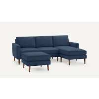 Nomad Sofa Sectional with Ottoman Navy Blue - Performance Basketweave / Walnut - Wood / Block