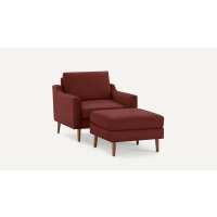 Nomad Armchair with Ottoman Brick Red - Performance Basketweave / Walnut - Wood / Slope