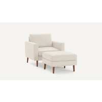 Nomad Armchair with Ottoman Ivory - Performance Basketweave / Walnut - Wood / Block