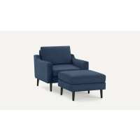 Nomad Armchair with Ottoman Navy Blue - Performance Basketweave / Ebony - Wood / Slope