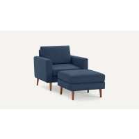 Nomad Armchair with Ottoman Navy Blue - Performance Basketweave / Walnut - Wood / Block