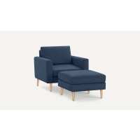 Nomad Armchair with Ottoman Navy Blue - Performance Basketweave / Oak - Wood / Block