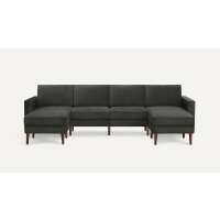 Nomad Velvet Sofa Sectional with Ottoman Feather - Performance Velvet / Ebony - Wood