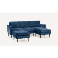 Nomad Velvet Sofa Sectional with Ottoman Midnight - Performance Velvet / Walnut - Wood