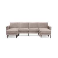 Nomad Velvet King Sofa with Double Reversible Chaise Dusk - Performance Velvet / Walnut - Wood