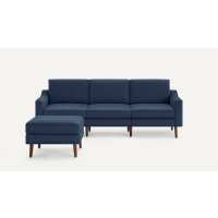 Nomad Sofa with Ottoman Navy Blue - Performance Basketweave / Walnut - Wood / Slope