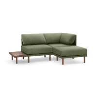Range 3-Piece One Arm Sectional Lounger with Table Moss Green - Performance Basketweave / Walnut - Wood / NA