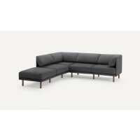 Field 5-Piece Sectional Fog - Performance Flat Twill / Walnut - Wood