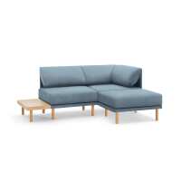 Range 3-Piece One Arm Sectional Lounger with Table Ocean - Performance Velvet / Oak - Wood / NA