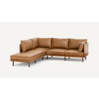 Field Leather 5-Piece One Arm Sectional Lounger Camel - Top Grain Leather / Walnut - Wood