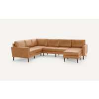 Nomad Leather 6-Seat Corner Sectional with Reversible Chaise Camel - Top Grain Leather / Walnut - Wood / Block