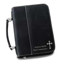 “This Bible cover is very well made and it fits my Bible perfectly! The handle is sturdy and the black color looks professional. I absolutely love it!”