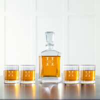 Personalized Decanter set with 4 Lowball Whiskey Glasses Stamped