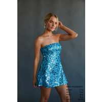 Sasha Sequin Skater Mini Dress Aqua / S