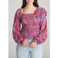 Women's Tall Balloon Sleeve Smocked Blouse in Red & Blue Tropical Print M / Tall / Red & Blue Tropical Print