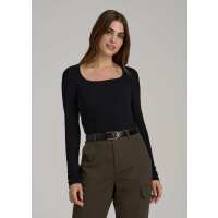 Long Sleeve Ribbed Square Neck Top for Tall Women in Black XL / Extra Tall / Black
