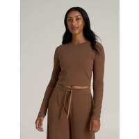 Cropped Long Sleeve Waffle Shirt for Tall Women in Otter Brown M / Extra Tall / Otter Brown