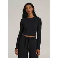 Cropped Long Sleeve Waffle Shirt for Tall Women in Black L / Extra Tall / Black