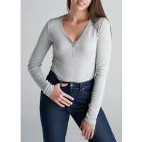 Tall Women's FITTED Ribbed Long Sleeve Henley in Grey Mix M / Tall