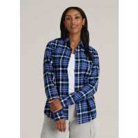 Flannel Button-Up Shirt for Tall Women in Cobalt, Navy, and Peach Plaid L / Tall / Cobalt, Navy, and Peach Plaid