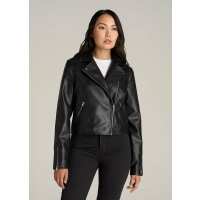 Cropped True Touch Leather Moto Jacket for Tall Women in Black XS / Tall / Black