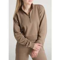 Wearever Fleece Cropped Garment Dye Half Zip Women's Tall Sweatshirt in Latte M / Extra Tall / Latte