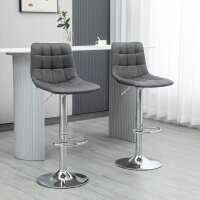HOMCOM Bar Chair Set of 2, Adjustable Breakfast Dining Stools for Kitchen, Modern Counter Barstools with 360° Swivel and Footrest, Grey | Aosom UK
