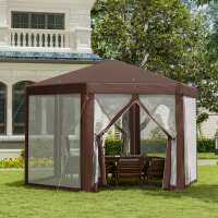 Outsunny Hexagonal Garden Gazebo Patio Party Outdoor Canopy Tent Sun Shelter with Mosquito Netting and Zipped Door, Brown