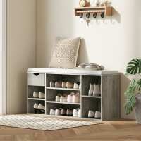 HOMCOM Shoe Storage Bench with Cushion - Grey