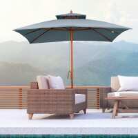 Outsunny 3x3(m) Wood Square Patio Umbrella Garden Market Parasol Sunshade Canopy with 2 Pulley Pagoda Style Dark Grey