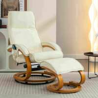 Electric Recliner Armchair with 5 Point Massage, Ottoman Footstool, Bentwood Base, Lounger Chair for Living Room, 85x67x103 cm, Beige | Aosom.UK
