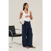 Bambi Pinstripe Adjustable Wide Leg Pant - Navy / White XL