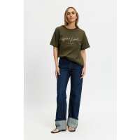 Cali Embroidered Longline Panel Tee - Olive / Pink L