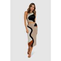Ingela Knit Midi Skirt - Brown / Beige / Black M