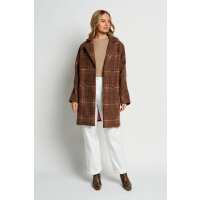 Phoebe Oversized Coat - Brown / Pink Check S