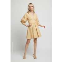 Mallorca Seersucker Babydoll Midi Dress - Latte XL