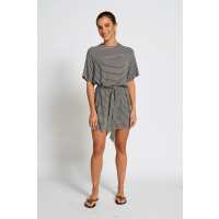 Rylee Stripe Box-Cut Tee Dress - Charcoal / White M