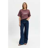 Sunday Drop-Shoulder Cropped Tee - Plum / Cream S