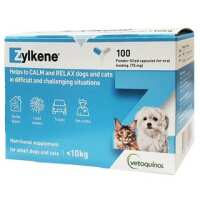 Zylkene Calming Supplement For Small Cats & Dogs 0-10kg (Blue) 75mg - 100 Capsules blister pack