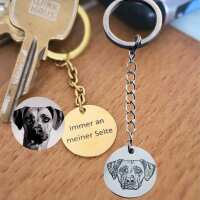 Schlüsselanhänger mit graviertem Hundeportrait ohne Namensgravur / mit Rückseitengravur / Silber
