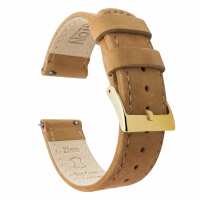 Gingerbread Brown Leather Quick Release Watch Band 16mm / Gold