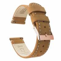 Gingerbread Leather White Stitching Quick Release Watch Band 18mm / Rose Gold / Standard