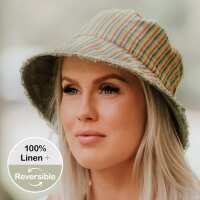 'Traveller' Reversible Adults Frayed Bucket Sun Hat - Gwen / Moss - 52 - 56cm / S