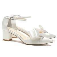 Ivory Flower Crystal Embellished Block Heels