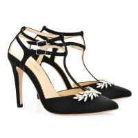 Crystal Embellished Heels, T Strap Pumps US7.5 / EU38 / UK5 / Black