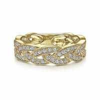 Gabriel Yellow Gold Intertwining "Twist" Diamond Right Hand Ring 14K White Gold