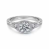 Gabriel & Co. "Tallulah" Three Stone Milgrain Halo Diamond Engagement Ring 18K Rose Gold